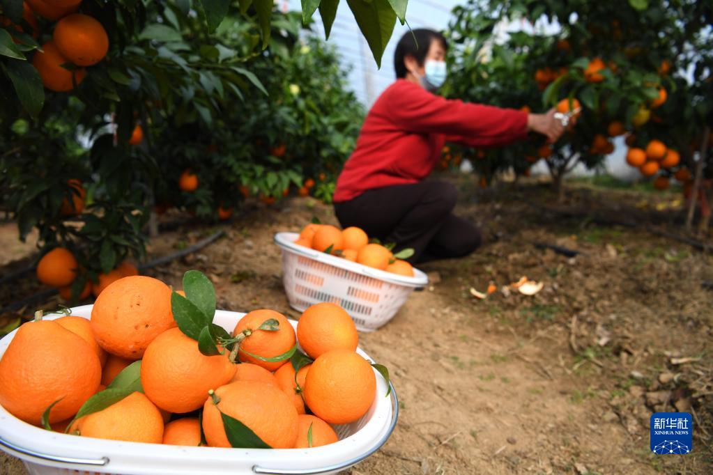 11月26日,村民在肥西縣銘傳鄉王井社區特色蔬果產業園內采摘“紅美人”柑橘。