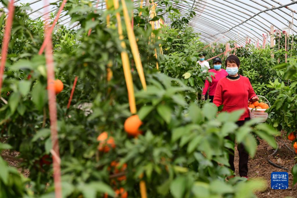 11月26日,村民在肥西縣銘傳鄉王井社區特色蔬果產業園內采摘“紅美人”柑橘。
