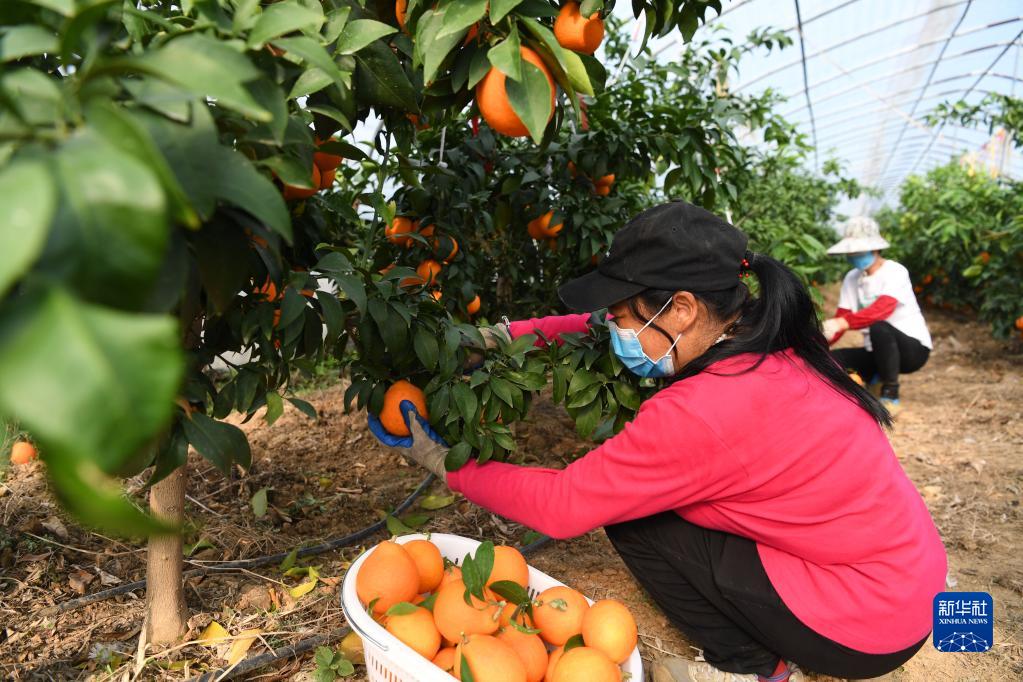 11月26日,村民在肥西縣銘傳鄉王井社區特色蔬果產業園內采摘“紅美人”柑橘。