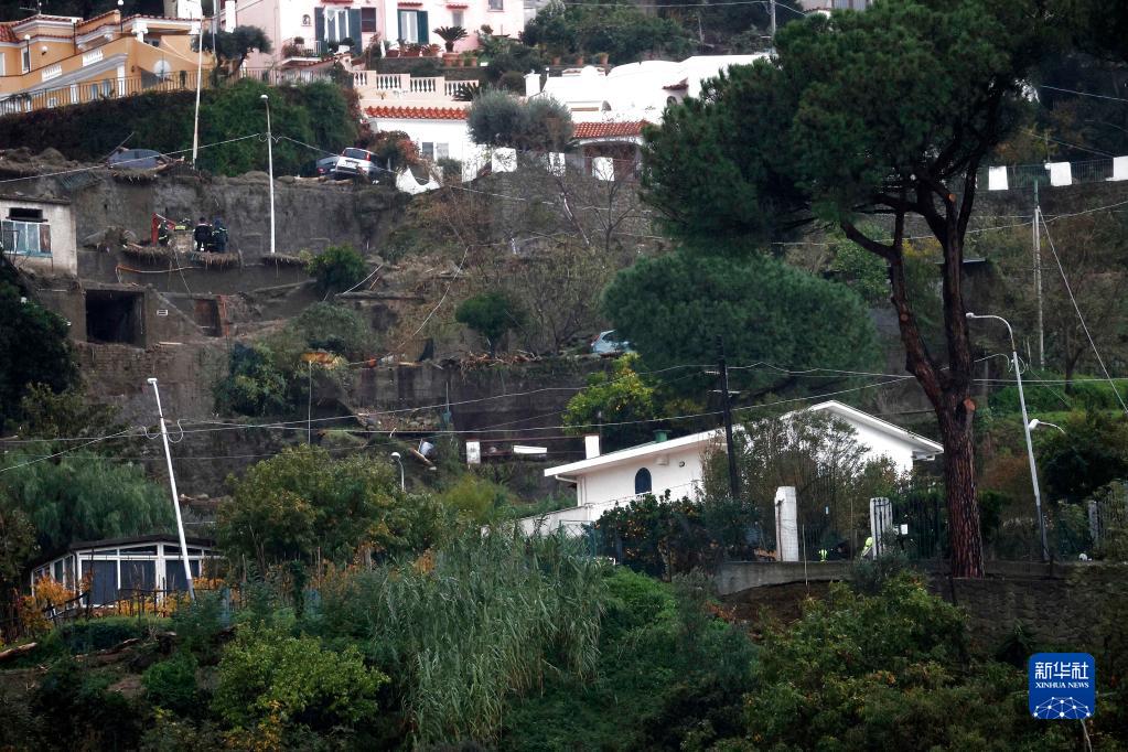 這是11月26日在意大利伊斯基亞島拍攝的受災情況。