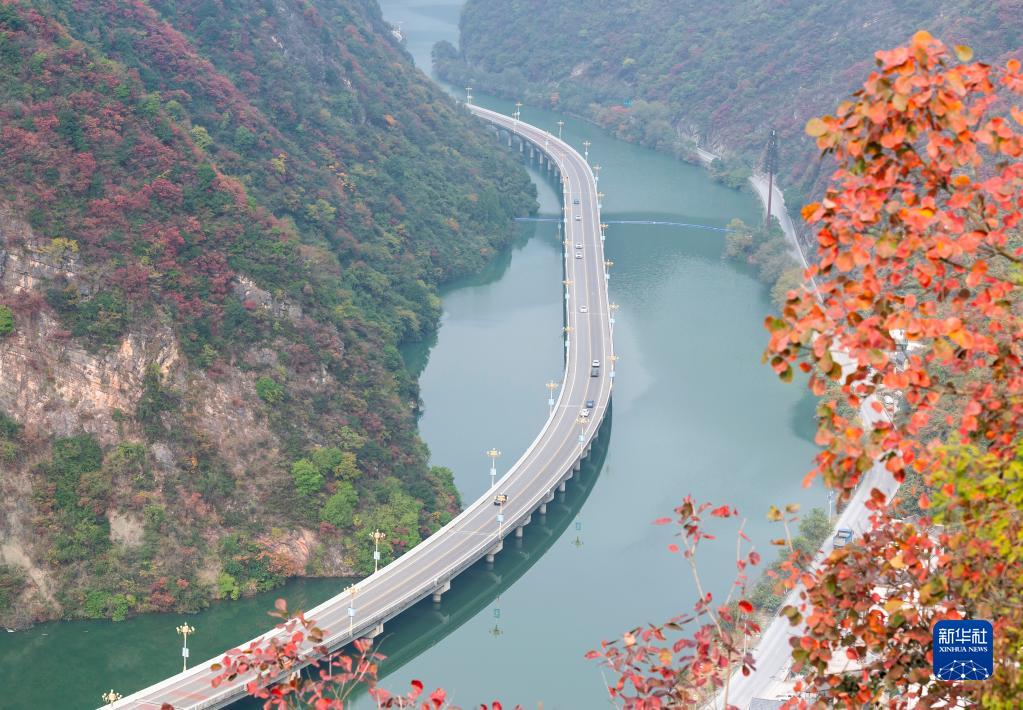 初冬時節,漫山的紅葉、碧綠的溪水、如梭的車流和蜿蜒曲折的“水上公路”構成一幅“路景相融”的生態畫卷。三峽庫區湖北省宜昌市興山縣修建的“水上公路”,是為了保護生態環境,當地放棄開山修路或打隧道,通過水上架橋的方式修建的一條連接山外的大通道。公路建成后,該縣因地制宜發展生態旅游產業,如今,“水上公路”成為當地著名的網紅打卡地。