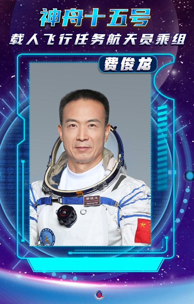經空間站階段飛行任務總指揮部研究決定,費俊龍、鄧清明、張陸3名航天員將執行神舟十五號載人飛行任務,由費俊龍擔任指令長。