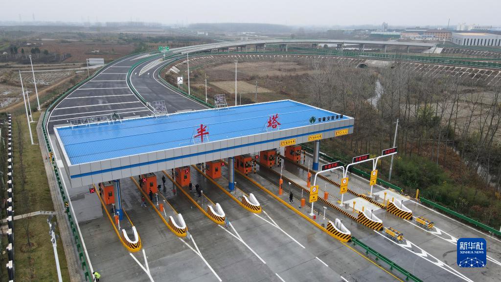這是安徽路橋集團承建的北沿江高速公路滁州至天長段半塔收費站(11月27日攝,無人機照片)。