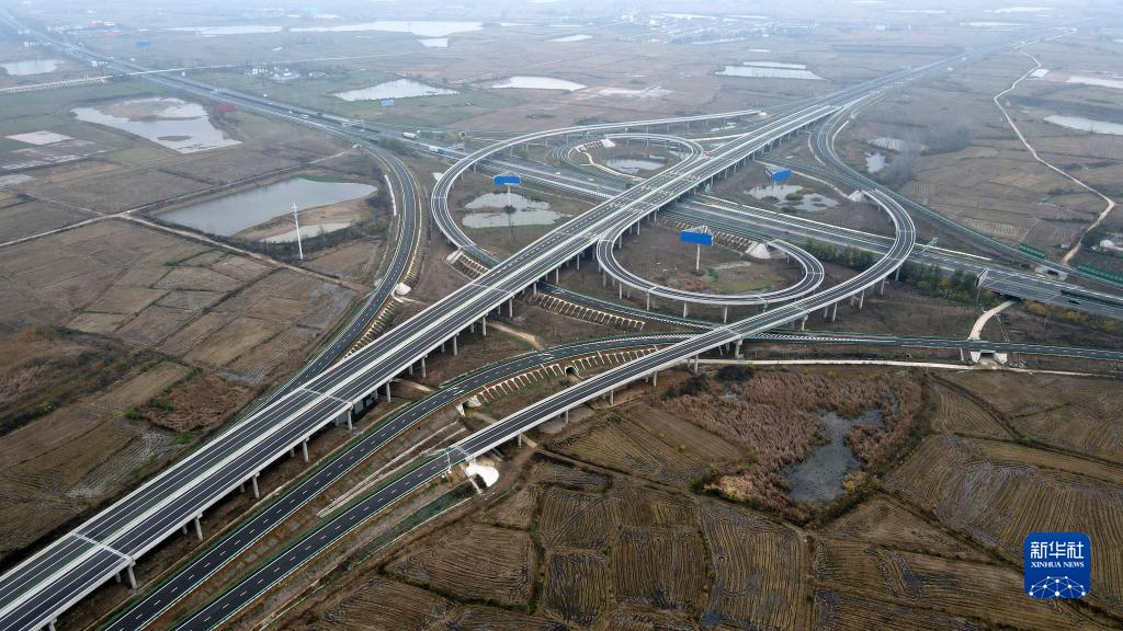 這是安徽路橋集團承建的北沿江高速公路滁州至天長段釜山樞紐互通立交(11月27日攝,無人機照片)。