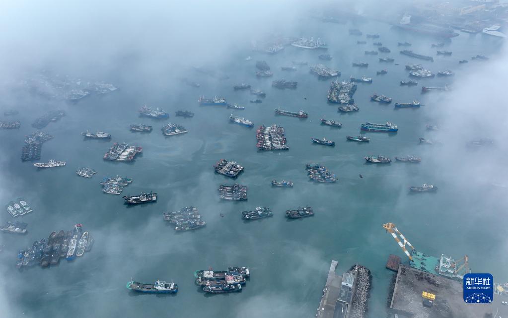 受冷空氣影響,山東省榮成市大量漁船返回漁港,躲避寒潮、大風。