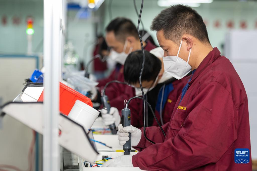 11月27日,在拉薩市一家工廠內,工人在電器裝配生產線上作業。