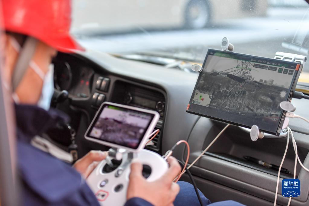 11月27日,國家電網黑龍江電力哈爾濱供電公司智能巡檢中心職工在哈爾濱市區開展輸電線路無人機智能巡檢。