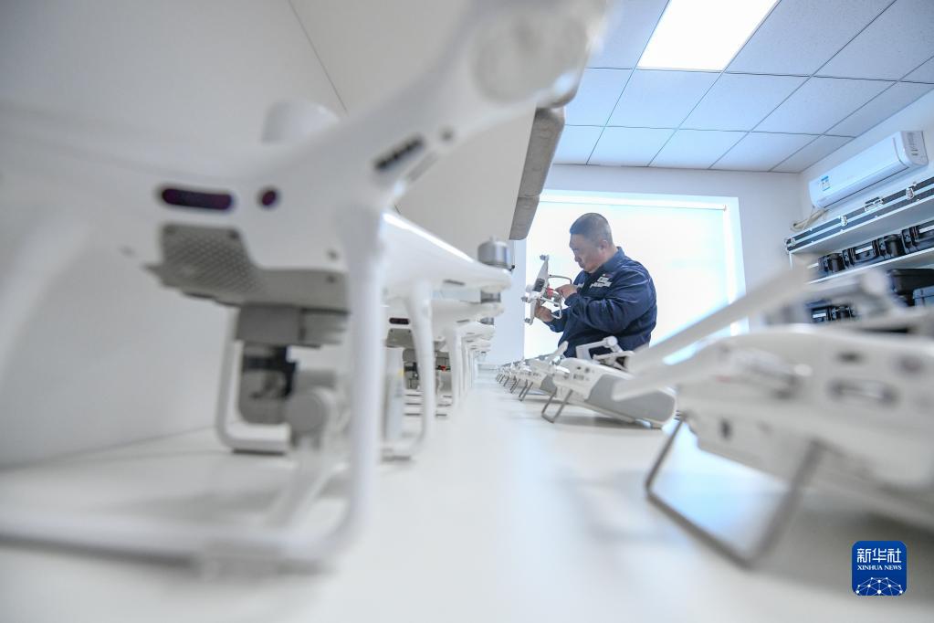11月27日,于洋在智能巡檢中心維護用于電力設備巡檢的無人機。