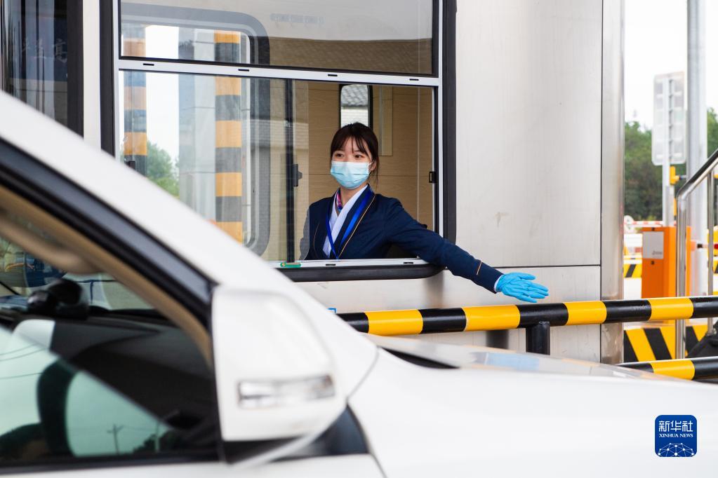 11月28日,工作人員引導駕駛員通過平益高速汨羅東收費站。