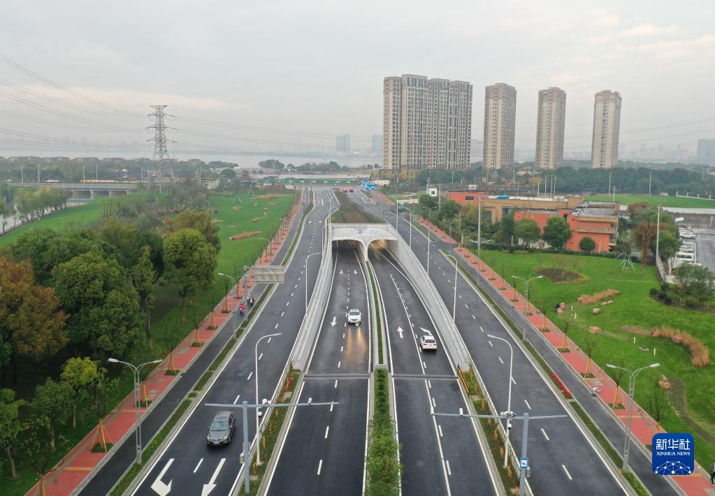11月28日,車輛通過蘇州獨墅湖南隧道。