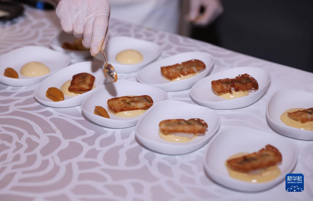 這是11月28日在位于巴黎的法國外交部舉行的榜單揭曉活動現場拍攝的美食。