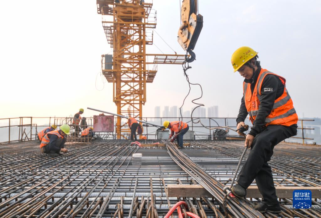 11月28日,工人在渝昆高鐵川渝段華福特大橋施工現場作業。