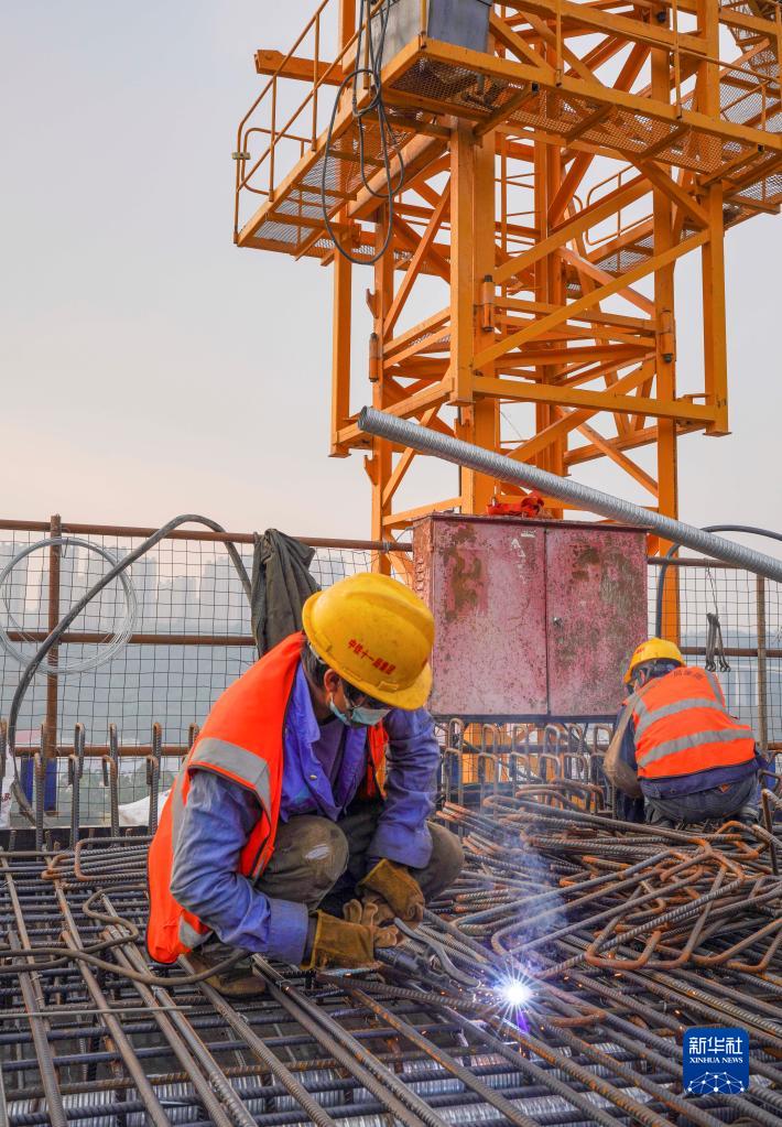 11月28日,工人在渝昆高鐵川渝段華福特大橋施工現場作業。