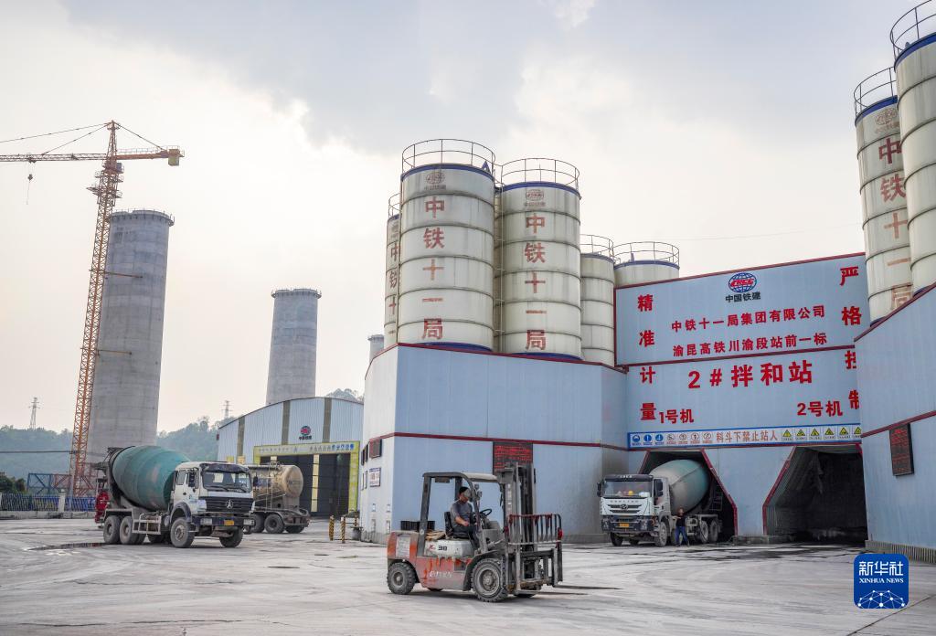 這是11月28日拍攝的渝昆高鐵川渝段站前一標2號拌和站作業現場。