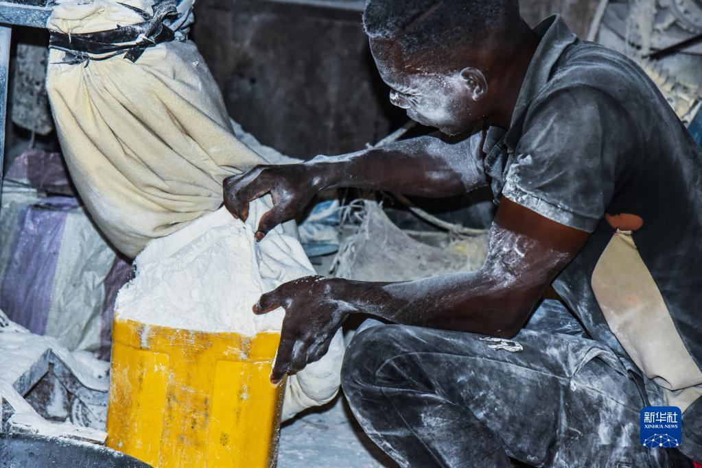 11月21日,在喀麥隆首都雅溫得,一名男子用機器研磨木薯粉。