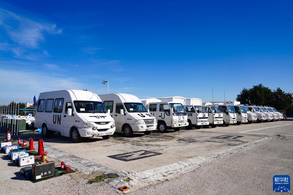 這是11月28日在黎巴嫩南部辛尼亞村的中國維和部隊營區拍攝的待檢查車輛。