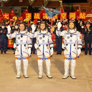 據中國載人航天工程辦公室消息,11月29日20時18分,神舟十五號載人飛行任務航天員乘組出征儀式在酒泉衛星發射中心問天閣圓夢園廣場舉行。航天員費俊龍(右)、鄧清明(中)、張陸在出征儀式上。