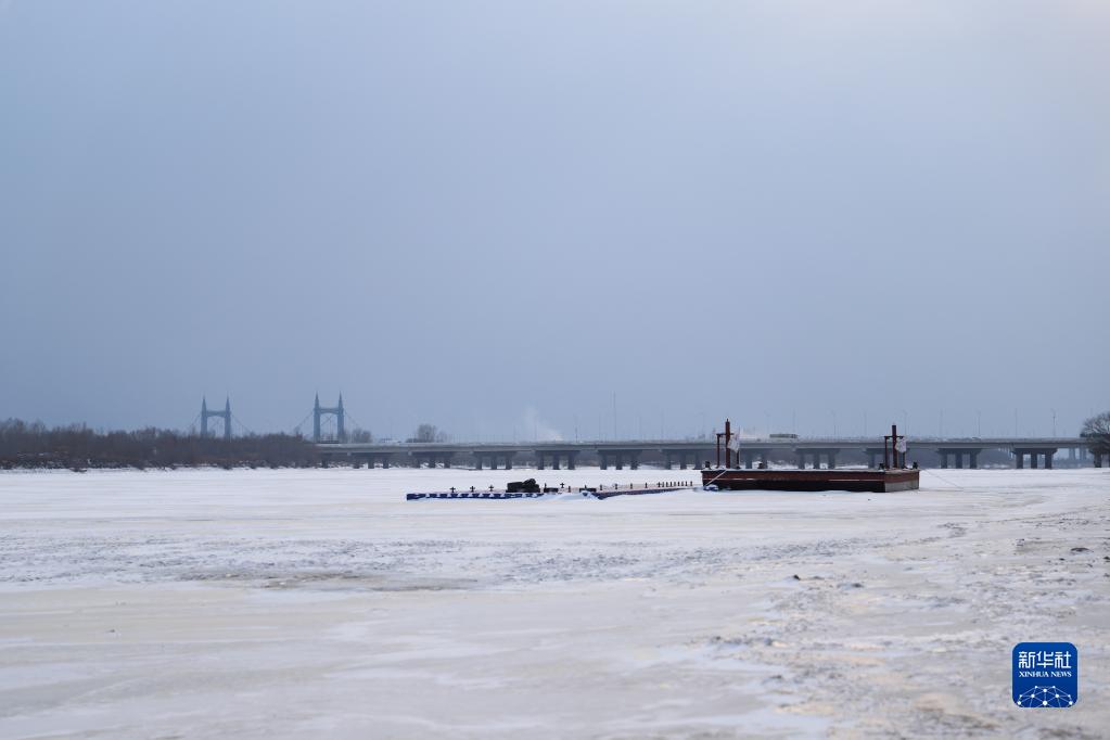 松花江干流哈爾濱段(哈爾濱市道里區老頭灣)于11月28日封凍。