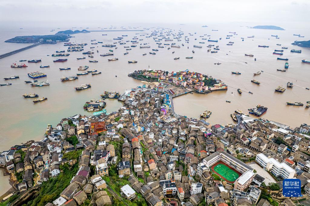 11月29日,在浙江省溫嶺市石塘鎮中心漁港,漁船進港避風(無人機照片)。