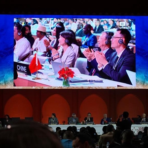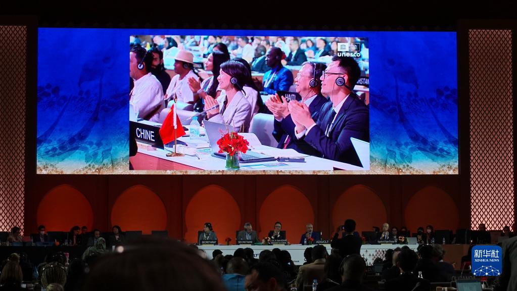 這是11月29日在摩洛哥拉巴特拍攝的聯合國教科文組織保護非物質文化遺產政府間委員會第17屆常會會議現場。