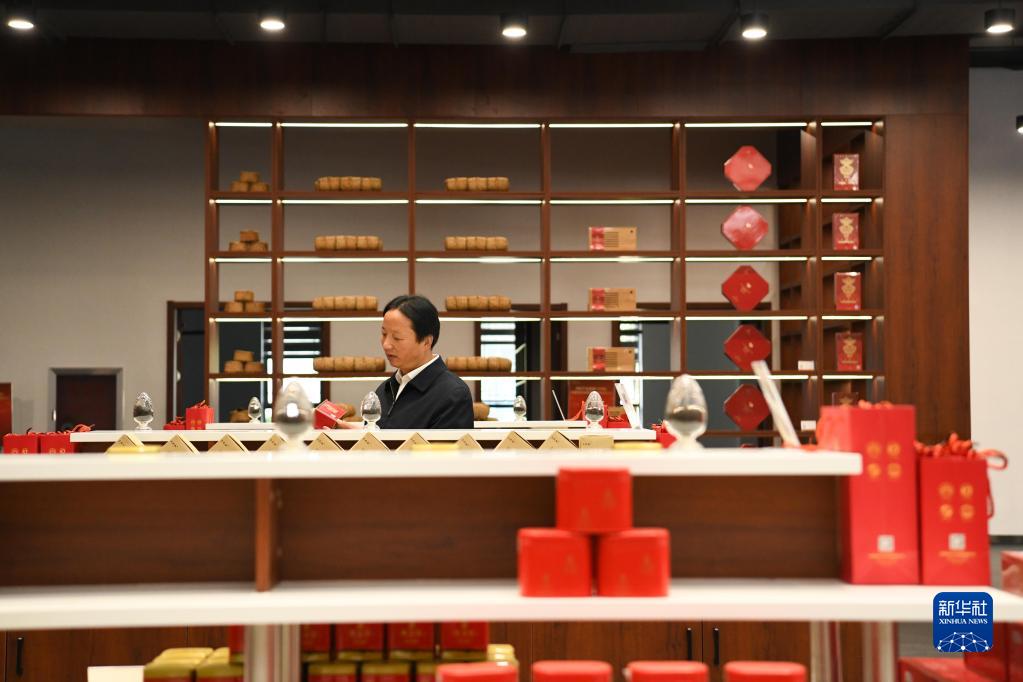 11月26日,安徽祁門紅茶制作技藝代表性傳承人王昶在祁門紅茶發展有限公司內查看祁門紅茶產品。