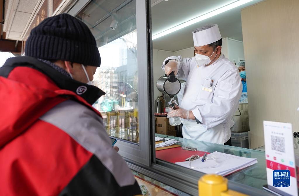 寒潮襲來,北京中國職工之家飯店設立了“小哥驛站”,專門為外賣和快遞騎手們提供售價10元的盒飯,并免費為“小哥”們提供熱水,讓他們在冬日里感受到關愛和溫暖。