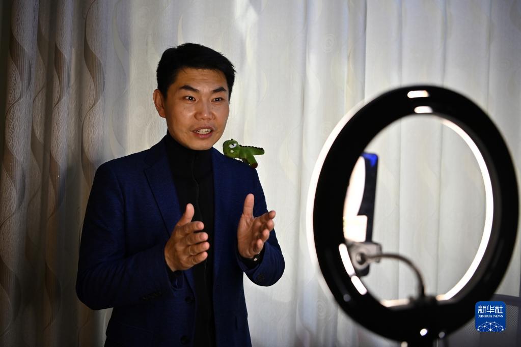 11月30日,太原市交通學校老師韓銳在家里錄制心理學科普小視頻。