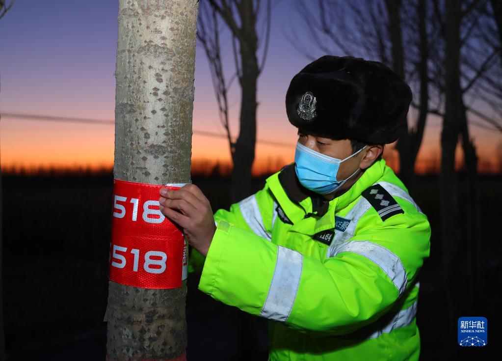 12月1日,沈陽市公安局交通警察局蘇家屯大隊交警檢查反光條粘貼情況。