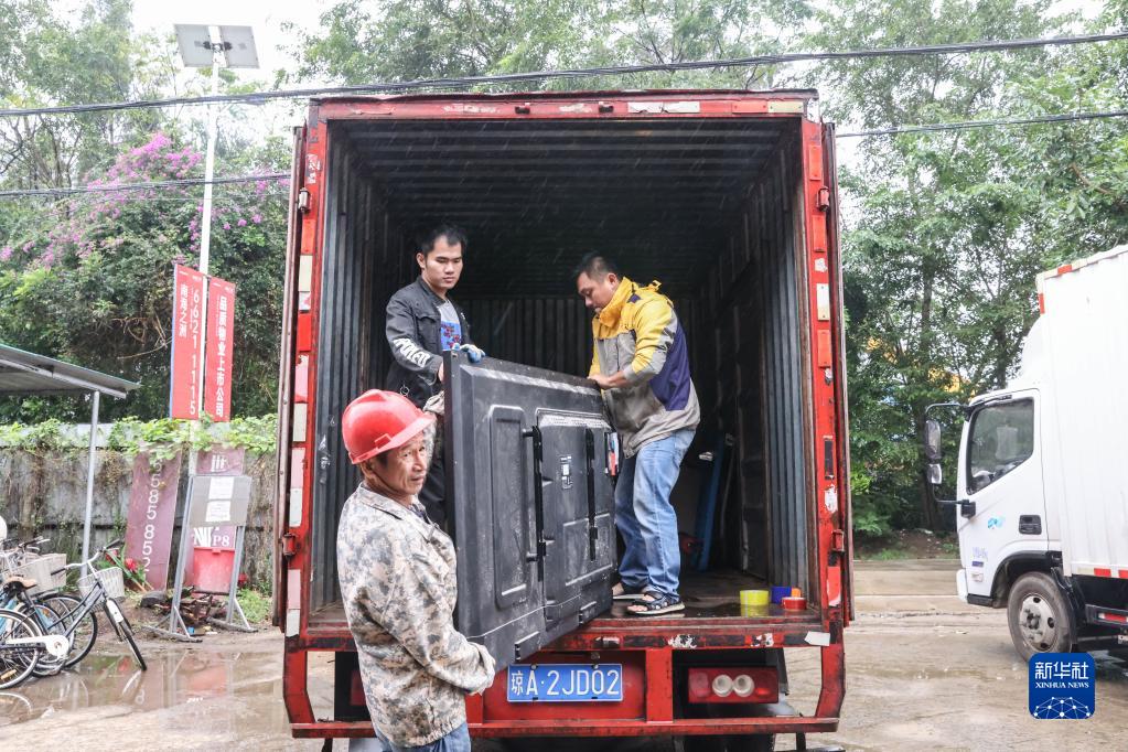 12月1日,海南殘服再生資源有限公司員工和物流人員將舊物搬上貨車。