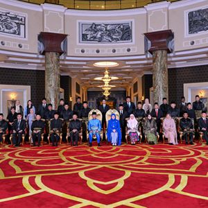 12月3日,馬來西亞最高元首阿卜杜拉(前左六)和總理安瓦爾(前左五)在吉隆坡國家皇宮與新內閣成員合影。