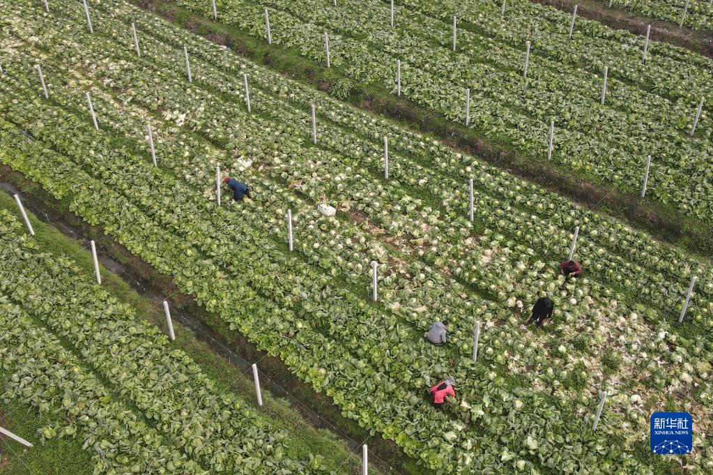 近日,受寒潮天氣影響,安徽省合肥市氣溫下降。合肥市肥西縣高店鎮蔬菜種植基地的菜農們加緊采收蔬菜,供應市場。