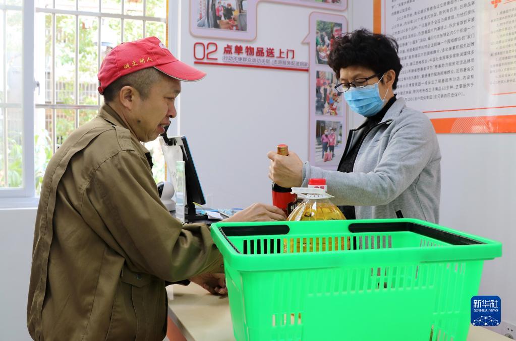 12月4日,江西省南昌市青云譜區青云譜鎮益民社區的居民在“慈善超市”購買食品。