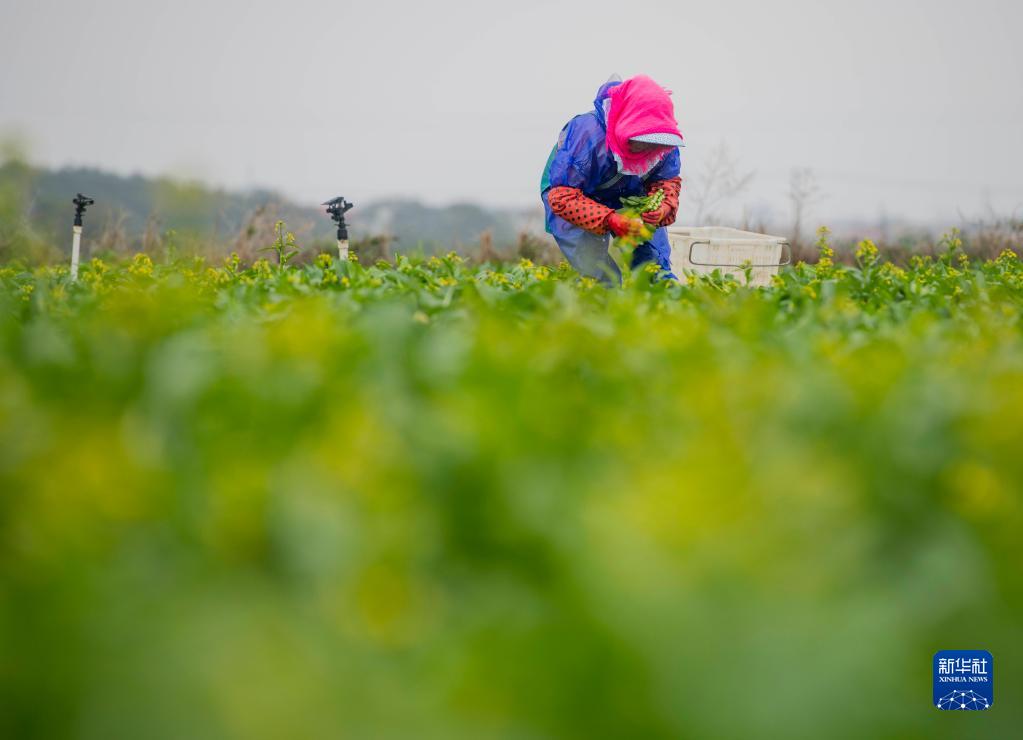 12月4日,在湖南省永州市道縣清塘鎮室家村,村民在蔬菜基地采摘蔬菜。