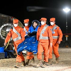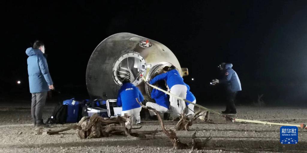 12月4日20時09分,神舟十四號載人飛船返回艙在東風著陸場成功著陸,現場醫監醫保人員確認航天員陳冬、劉洋、蔡旭哲身體狀態良好,神舟十四號載人飛行任務取得圓滿成功。新華社記者 李剛 攝