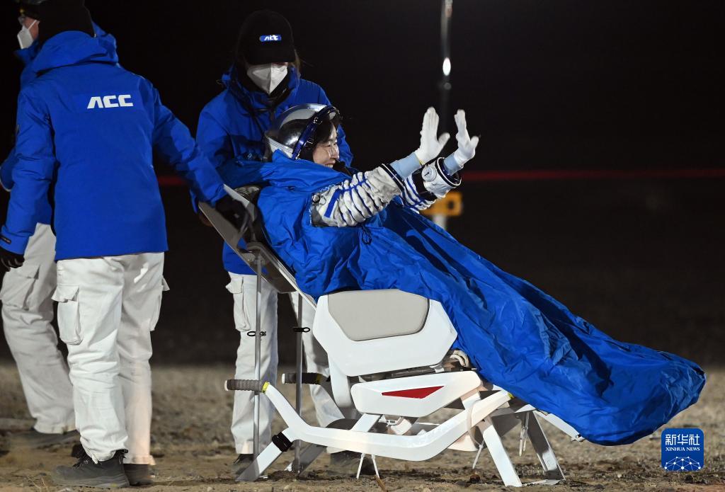 12月4日20時09分,神舟十四號載人飛船返回艙在東風著陸場成功著陸,現場醫監醫保人員確認航天員陳冬、劉洋、蔡旭哲身體狀態良好,神舟十四號載人飛行任務取得圓滿成功。這是航天員劉洋安全順利出艙。新華社記者 連振 攝