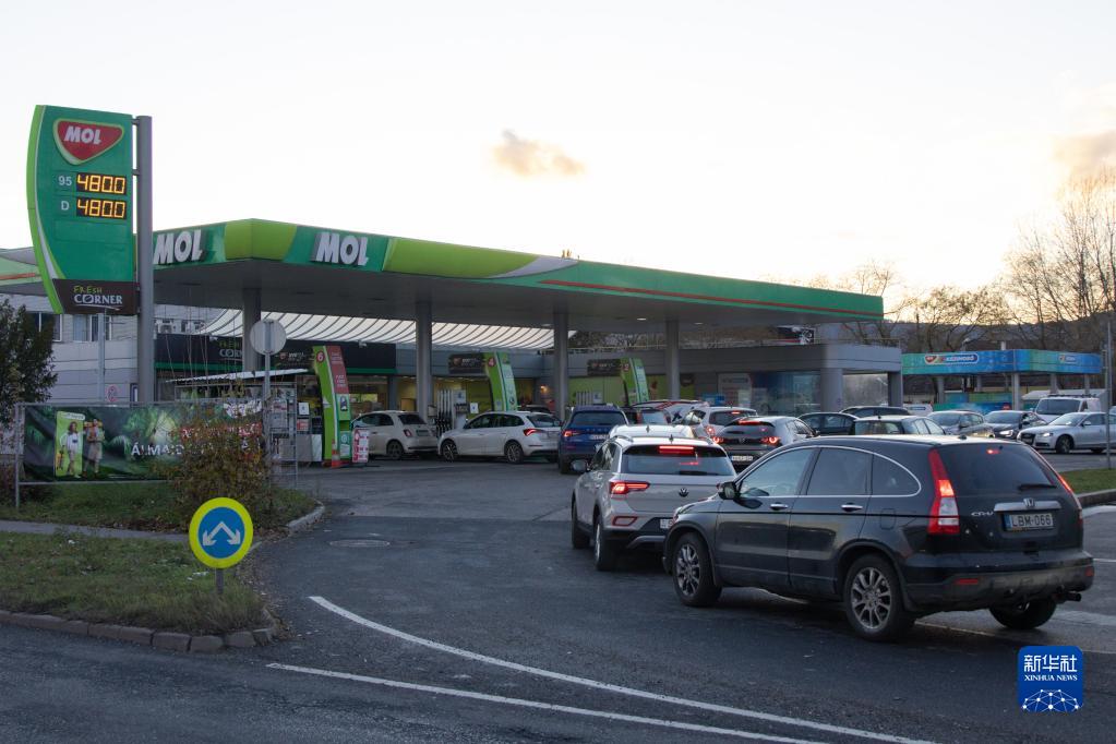 12月6日,匈牙利布達佩斯一處加油站外排起長龍。