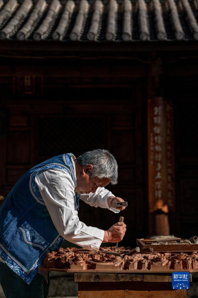 段四興在進行木雕制作中的打坯流程(12月1日攝)。