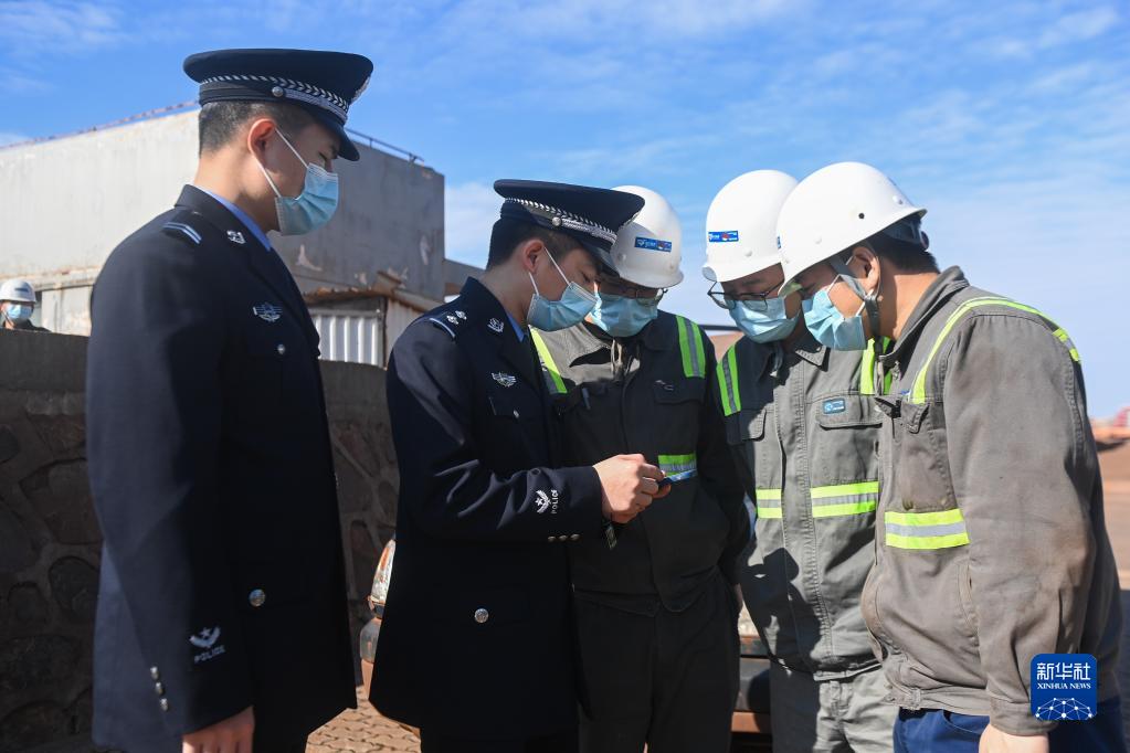 12月7日,舟山出入境邊防檢查站民警指導幫助鼠浪湖碼頭員工熟悉邊檢行政許可網上窗口登輪證的申請流程。