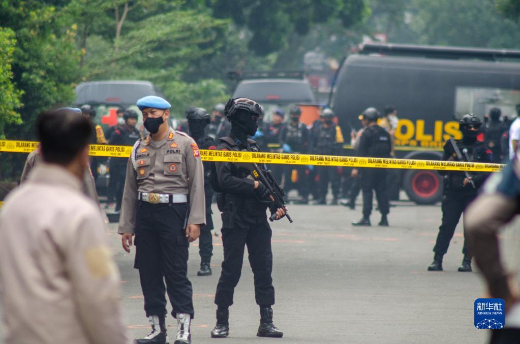 12月7日,在印度尼西亞萬隆,警察在事發警察局附近站崗。