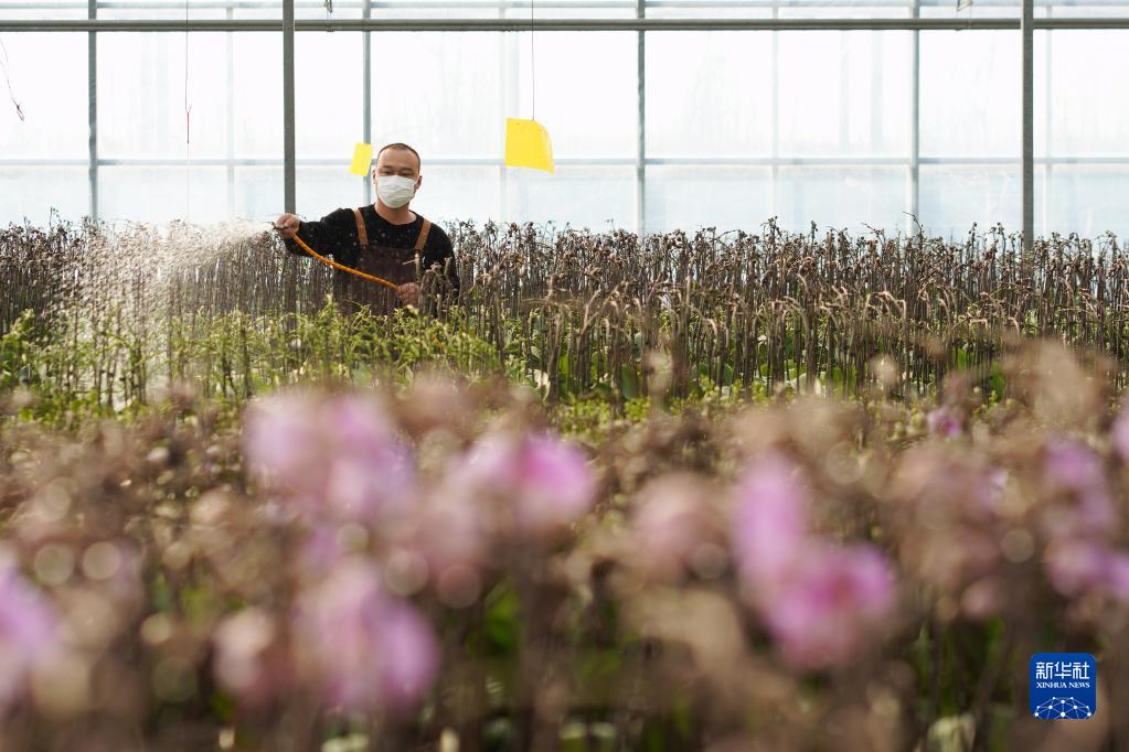 12月7日,河北省邢臺市內丘縣一處農業生態園的員工在溫室大棚里管護蝴蝶蘭。