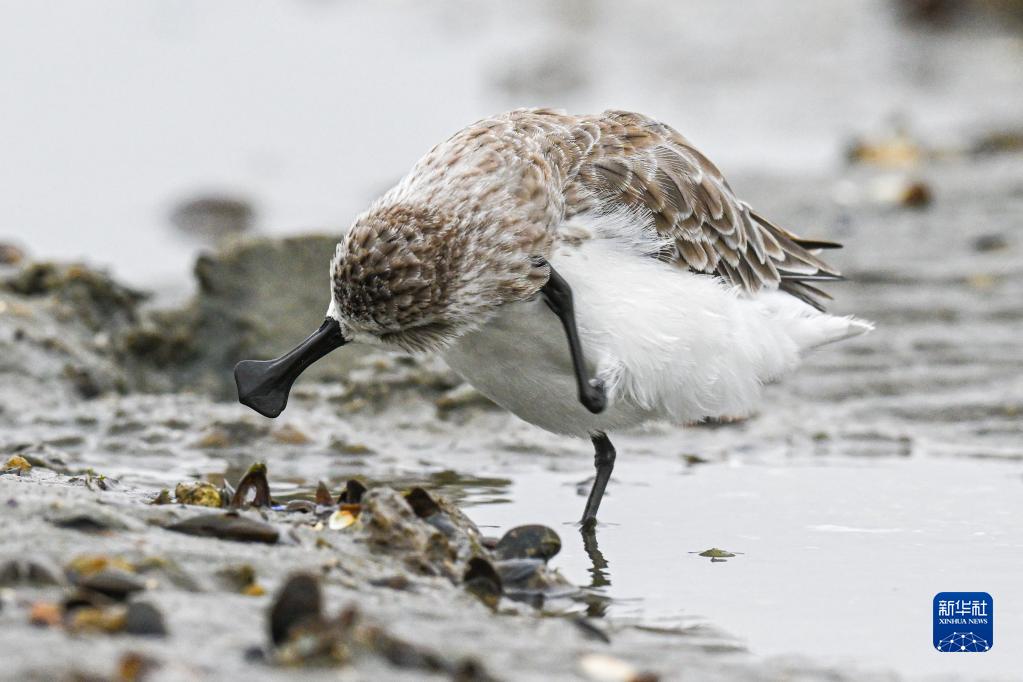 12月5日在海南省儋州市一處濕地拍攝的勺嘴鷸。
