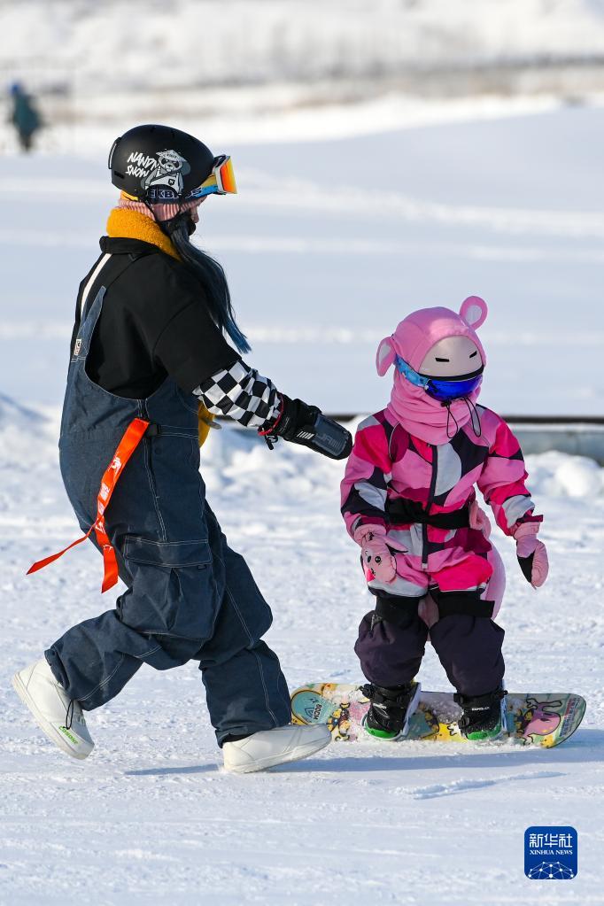 在新疆絲綢之路國際度假區滑雪場,一名小朋友在練習滑雪(12月5日攝)。