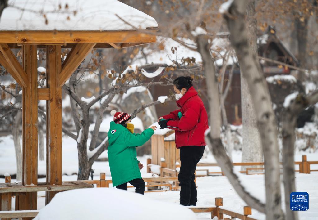 12月7日,在烏魯木齊人民公園內,一名小朋友和家人在玩耍。