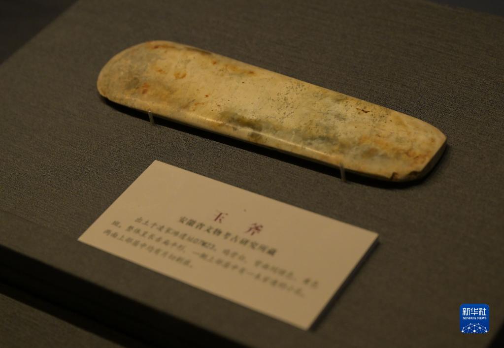 在“凌家灘文化展”上展出的玉斧(12月7日攝)。