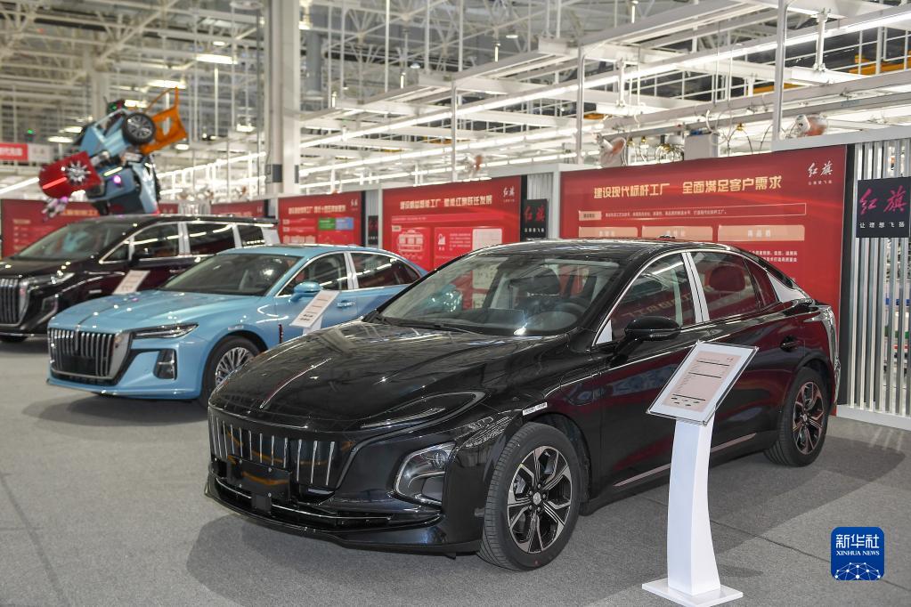 這是位于吉林長春的中國第一汽車集團有限公司紅旗繁榮工廠展出的紅旗車(11月15日攝)。