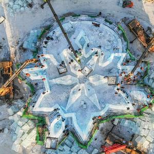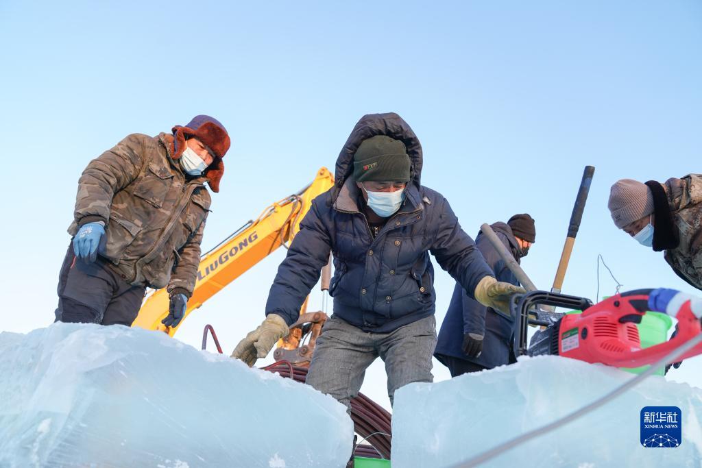 哈爾濱冰雪大世界冰建施工總體進度過半