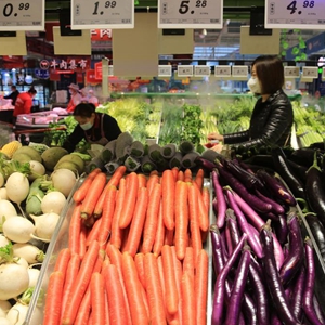 12月9日,顧客在江蘇省無錫市一家超市內選購蔬菜。
