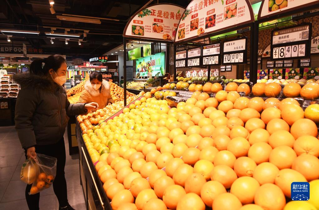 12月9日,顧客在河北省新樂市一家超市購買水果。
