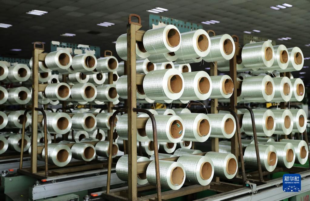 這是9月7日在埃及蘇伊士省蘇赫奈泉港拍攝的中國巨石埃及玻璃纖維股份有限公司(巨石埃及)生產車間。