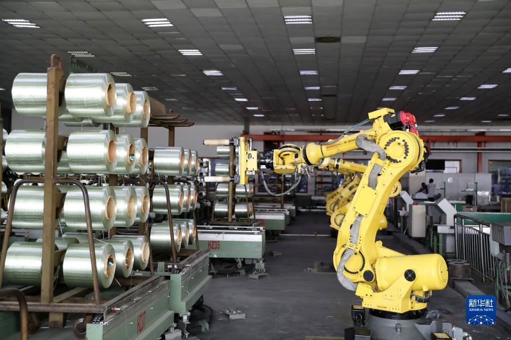 這是9月7日在埃及蘇伊士省蘇赫奈泉港拍攝的中國巨石埃及玻璃纖維股份有限公司(巨石埃及)生產車間。